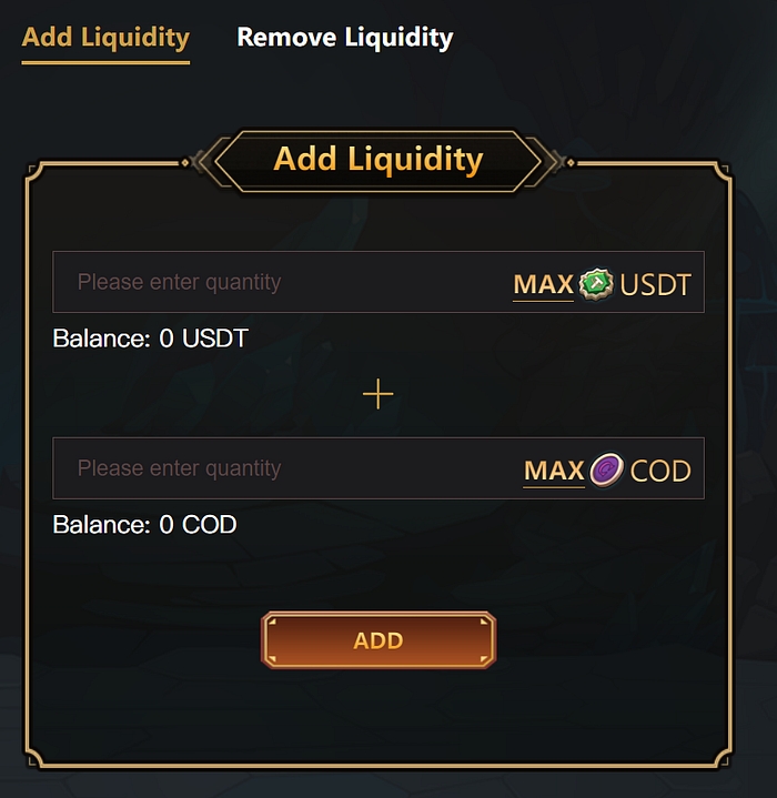 Enter your USDT quantity and $COD quantity